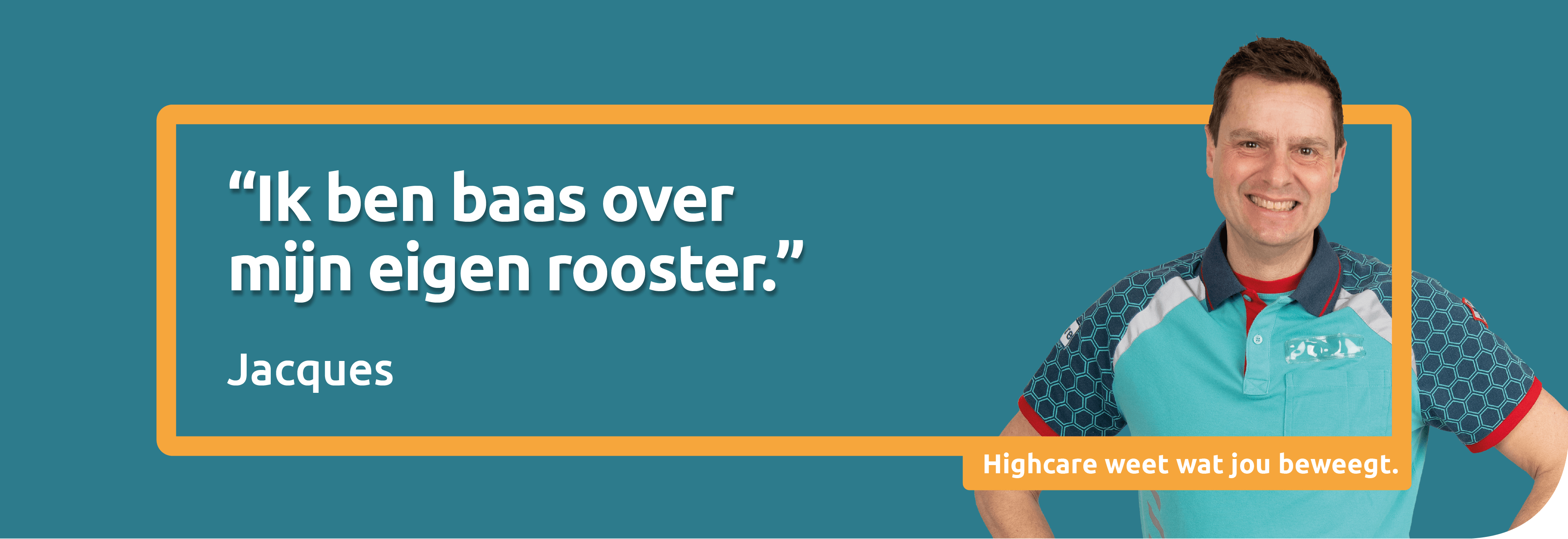 Jacques rijdt twintig uur in de week als chauffeur op de ambulance via Highcare. Doordat hij zelf zijn rooster kan bepalen, heeft Jacques naast zijn werk als ambulancechauffeur met Selnature.com al ruim tien jaar een succesvol bedrijf. Werken via Highcare zorgt ervoor dat Jacques het rijden op de ambulance kan combineren met ondernemerschap.
